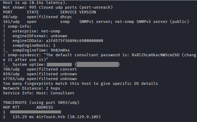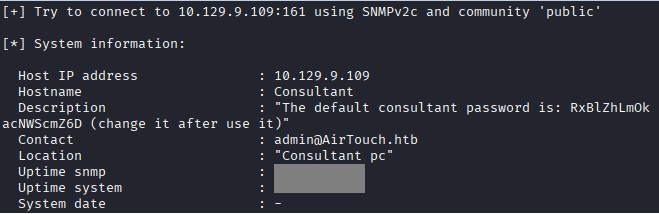 Command: snmp-check 10.129.9.109 -c public -t 10 -v 2c