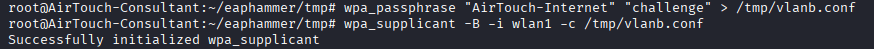 Command: wpa_passphrase “AirTouch-Internet” “challenge” > /XXX/XXX.conf