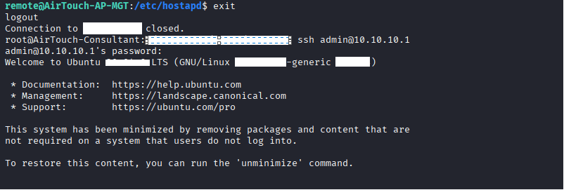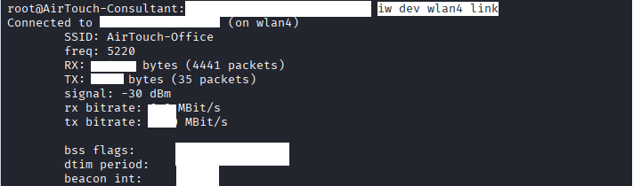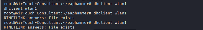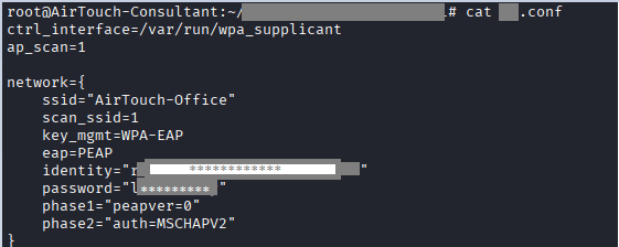 root@AirTouch-Consultant:~/eaphammer/XX/XX/# sed -i “s/ssid=test/ssid=AirTouch-Corporate/” hostapd.conf