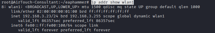 Command: cd ~/eaphammer/local/hostapd-eaphammer/hostapd && \