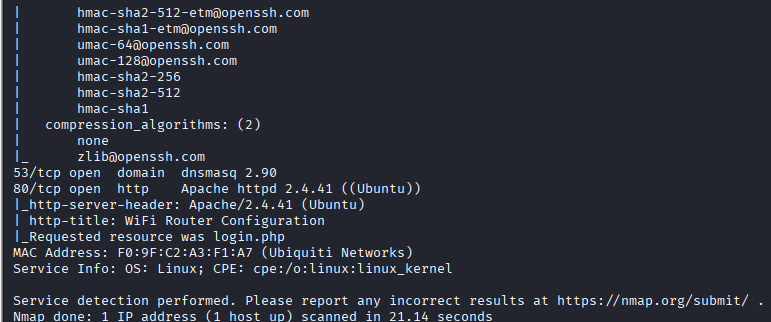 Command: nmap -sV -p- –script ssh2-enum-algos,http-title 192.168.3.1