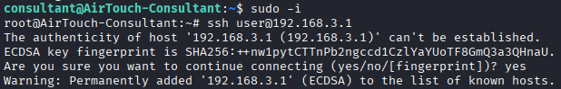 1st Command: ssh -f -N -L 4444:192.168.3.1:80 consultant@10.129.13.xx consultant@10.129.13.xx’s