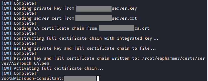 Command: ./eaphammer –cert-wizard import –server-cert server.crt –ca-cert ca.crt –private-key server.key
