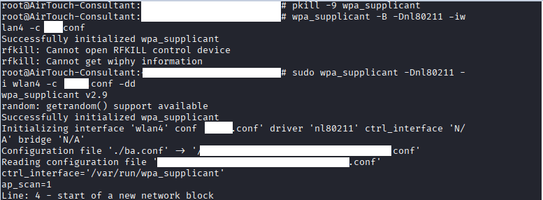 Command: sudo wpa_supplicant -Dnl80211 -i wlanX -c ./**.conf -dd