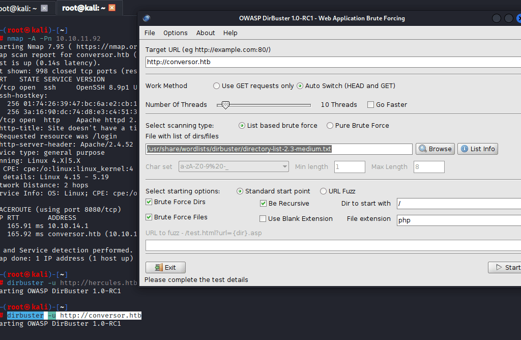My list is present on the path “/usr/share/wordlists/dirbuster/directory-list-2.3-medium.txt“, which you have to select on the GUI after clicking on Browse, once selected, click on start
