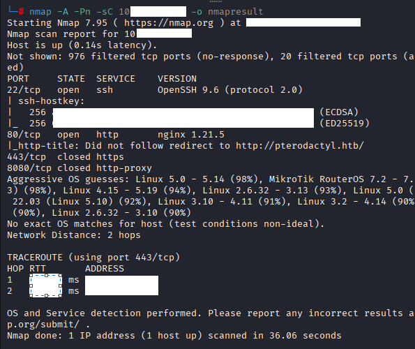 Command: nmap -A -Pn -sC 10.10.X.X -o nmapresult