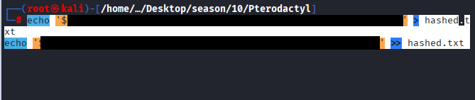 echo ‘XXXXXX$XXXXXXXXXXXXXXXXXXXXXXXXXXXXXXXXXXXXXXXXXi’ >> hashed.txt