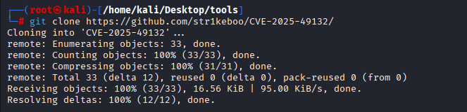 Command: git clone https://github.com/str1keboo/CVE-2025-49132/blob/