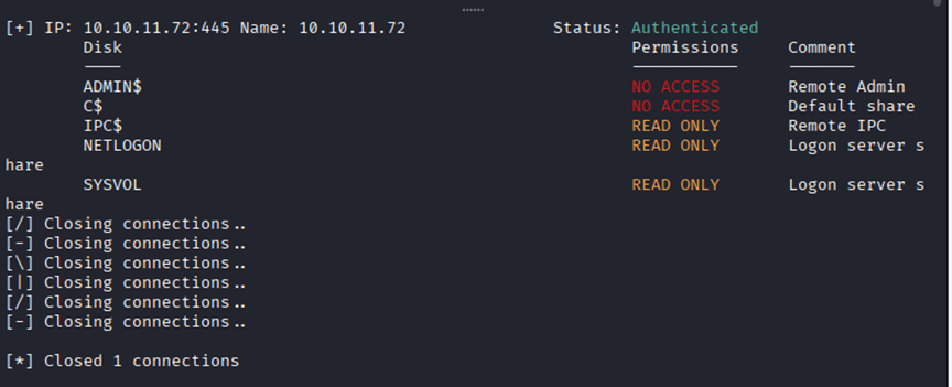 Command: smbmap -H 10.10.11.72 -u Alfred -p ‘basketball’