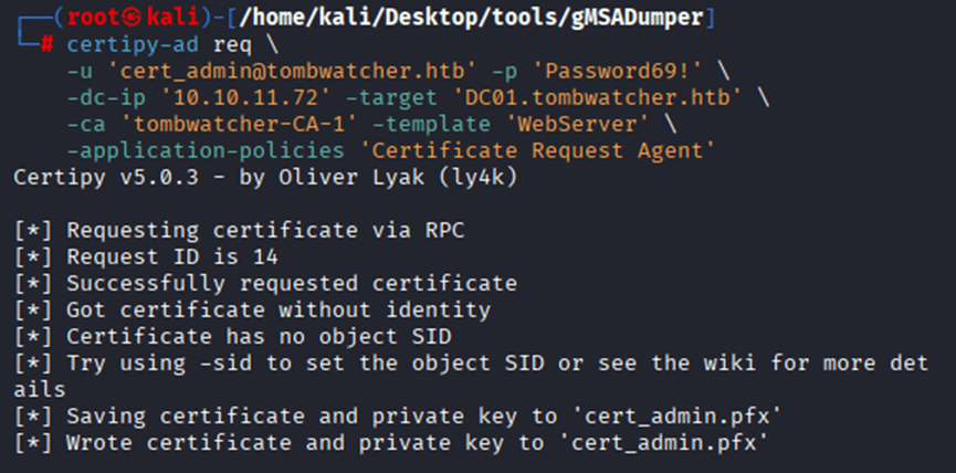 -ca ‘tombwatcher-CA-1’ -template ‘WebServer’ \