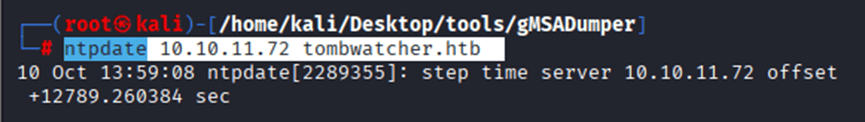 Command: ntpdate 10.10.11.72 tombwatcher.htb